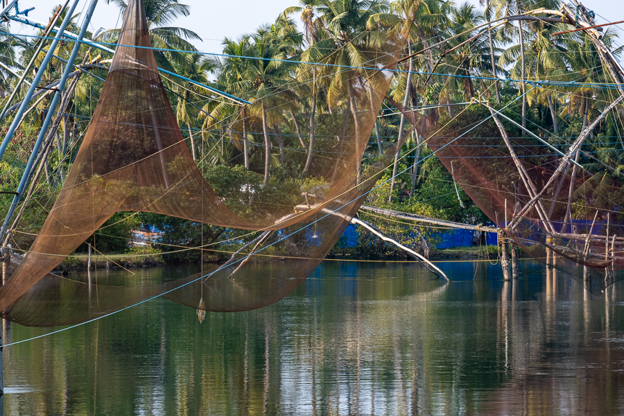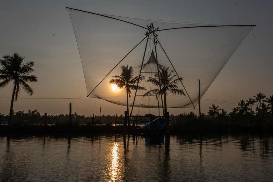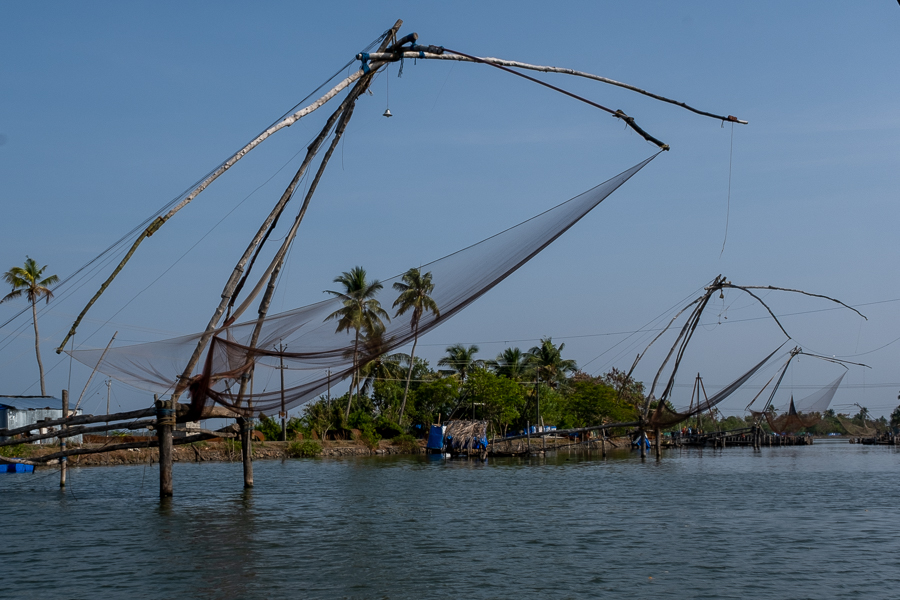 Heute ging es nach dem (späten) Frühstück noch etwas weiter nach Süden, in die sogenannten „Backwaters“. Das ist ein Labyrinth aus Kanälen und Seen im Hinterland der Küste, das Wasser ist brackig. Die Leute hier leben von Landwirtschaft und Fischfang.