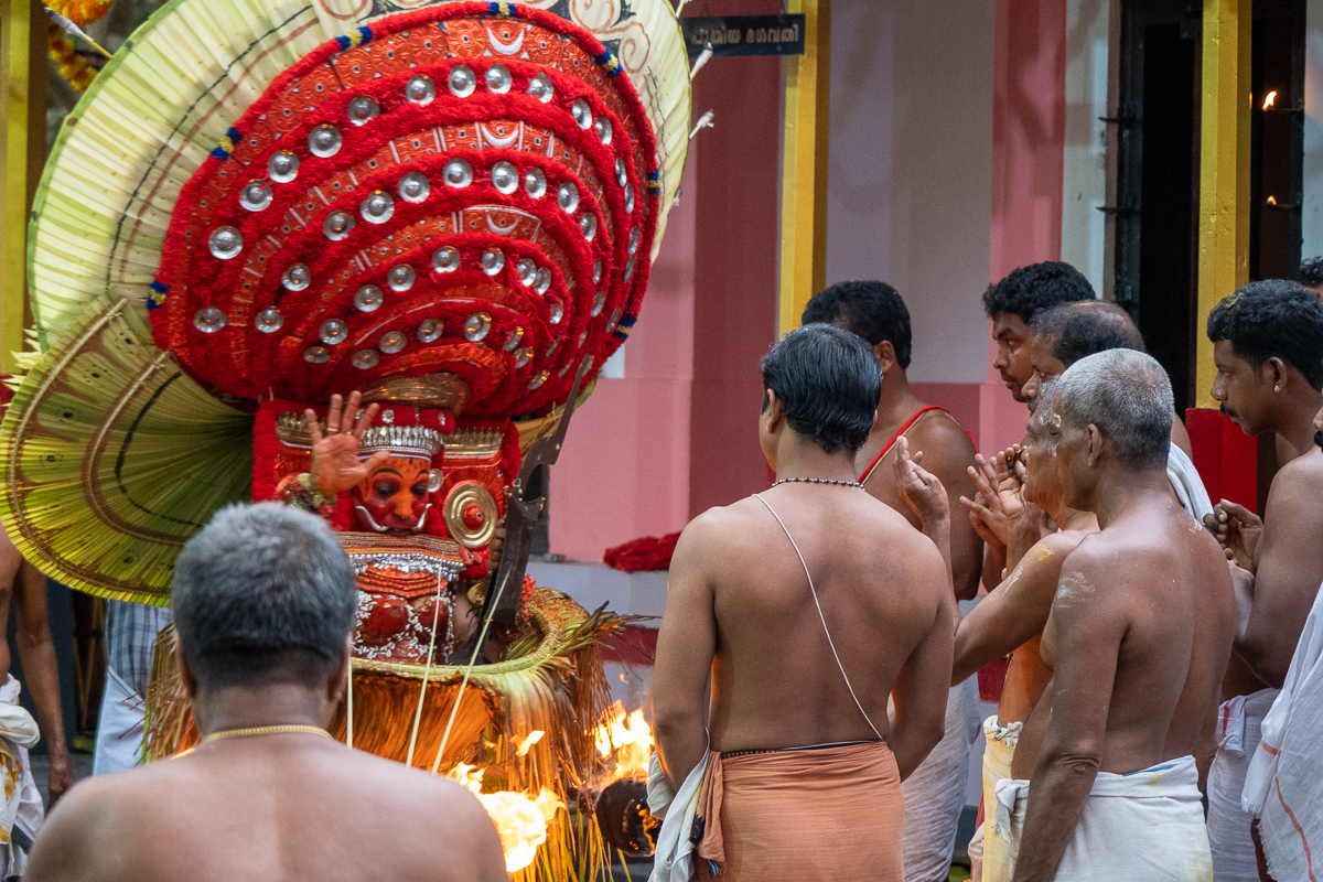 Fire – Do 27.02. Mann, was für ein intensiver Tag gestern ! Am sehr frühen Morgen sind wir zu unserem ersten Theyyam gestartet. Das ist ein hinduistisches Ritualtheater, welches zumeist bei Tempeln stattfindet, verbunden mit einem Fest der ganzen Dorfbevölkerung Es gibt über 400 Formen, welchen jeweils Figuren, Musik und Rituale in unterschiedlicher Form zugeordnet„FIRE…“ weiterlesen